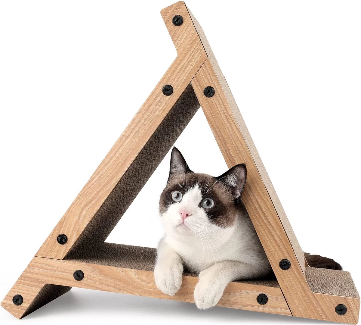 - Houd uw kat actief – Voor binnenkatten is het belangrijk om te ontspannen en te ontstressen. Een driehoekige krabmat kan ook gebruikt worden als kattentunnel. Het werkt als kattenspeelgoed en ook als meubelbeschermer.