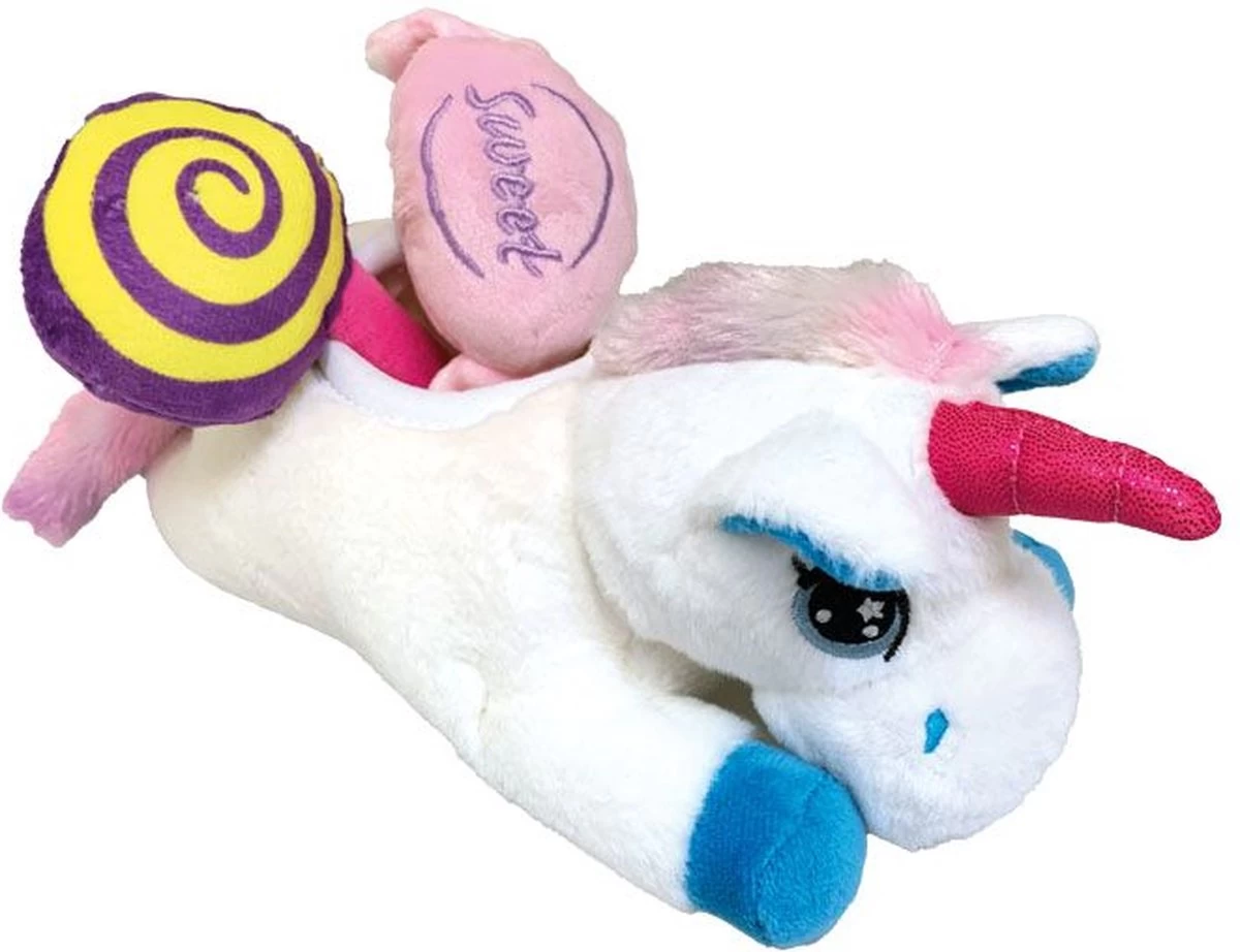 Bestaat uit een 3 delig set De eenhoorn en een snoepje en een lekstok.
