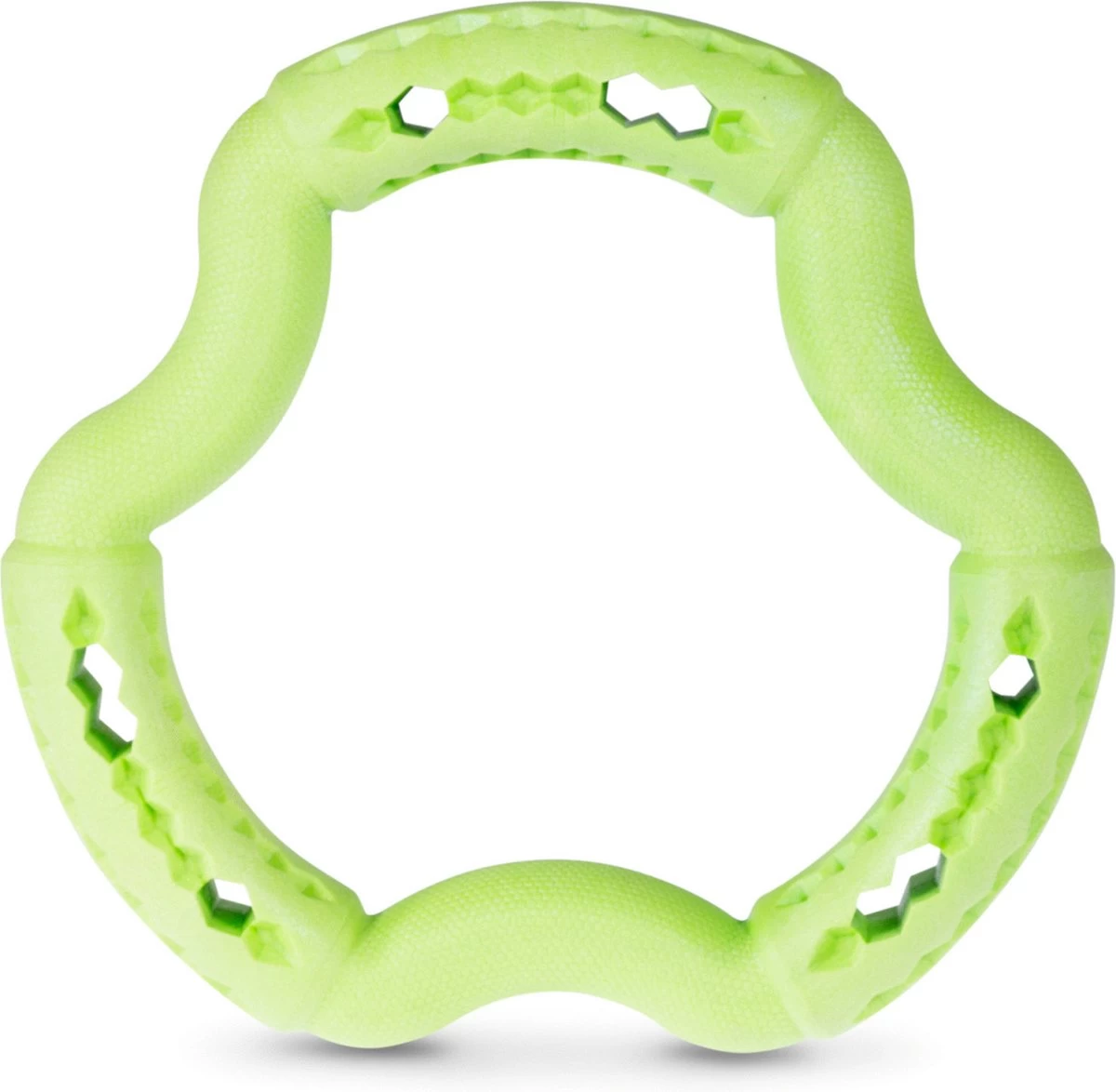 Speelring in zeer sterk TPR. Dit speeltje is niet enkel stevig, maar ook zeer aantrekkelijk voor de hond dankzij zijn heerlijke appelgeur.