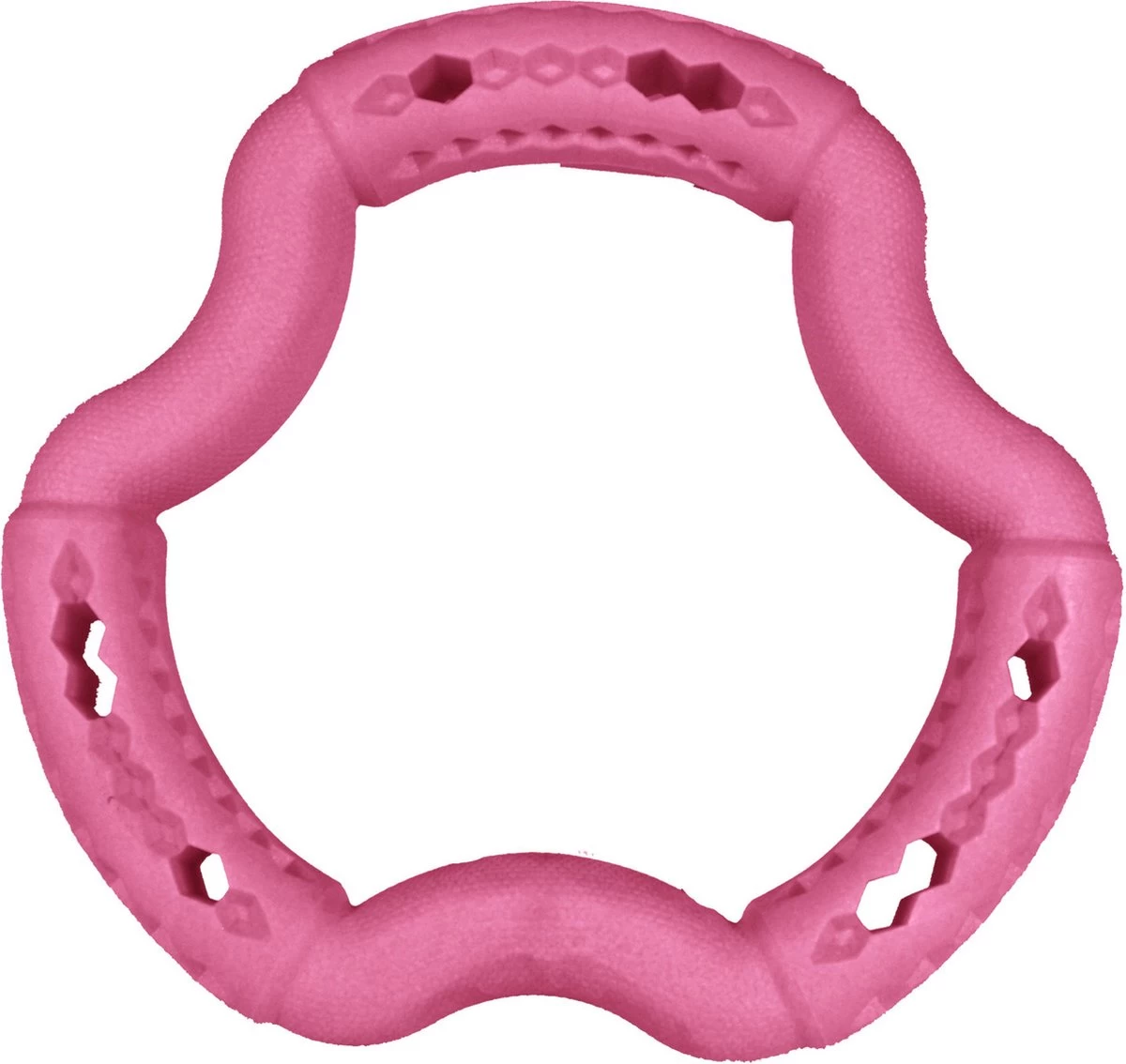 Thermoplastisch Rubber. Sterk en Duurzaam. Dit speeltje is niet enkel stevig, maar ook zeer aantrekkelijk voor de hond dankzij zijn heerlijke aardbeiengeur.
