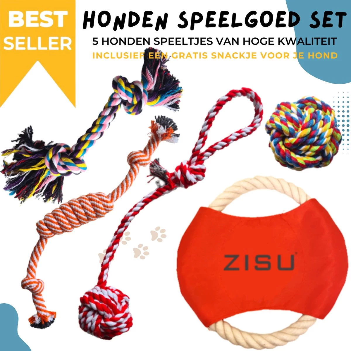 Ben je op zoek naar een leuke honden speelgoed set? Voor jouw viervoeter is er niets leuker dan urenlang spelen en dat kan met deze honden speelgoed set van ZISU, hiermee kan jouw hond(je) uren mee vermaakt worden. De honden speelgoed set bevat verschillende speeltjes gemaakt van veilig katoen en rubber.