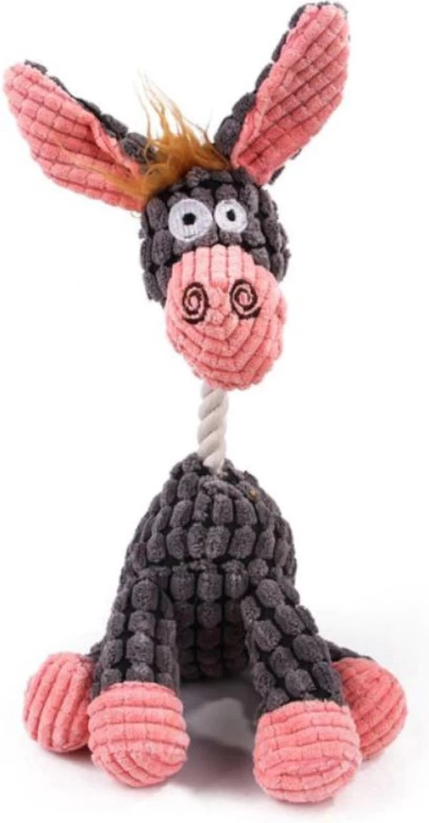 Deze superleuke ezel van extra stevig materiaal is het nieuwe vriendje van jouw hond! Deze zal hier urenlang mee spelen, achteraan rennen en knuffelen. Doordat hij gemaakt is van stevig pluche is hij heel stevig. De knuffel ezel is maar liefst 25 centimeter groot, ideeal! Door de mooie kleuren ziet hij er ook nog eens heel vrolijk uit. Kortom, de ideale knuffel voor jouw hond!