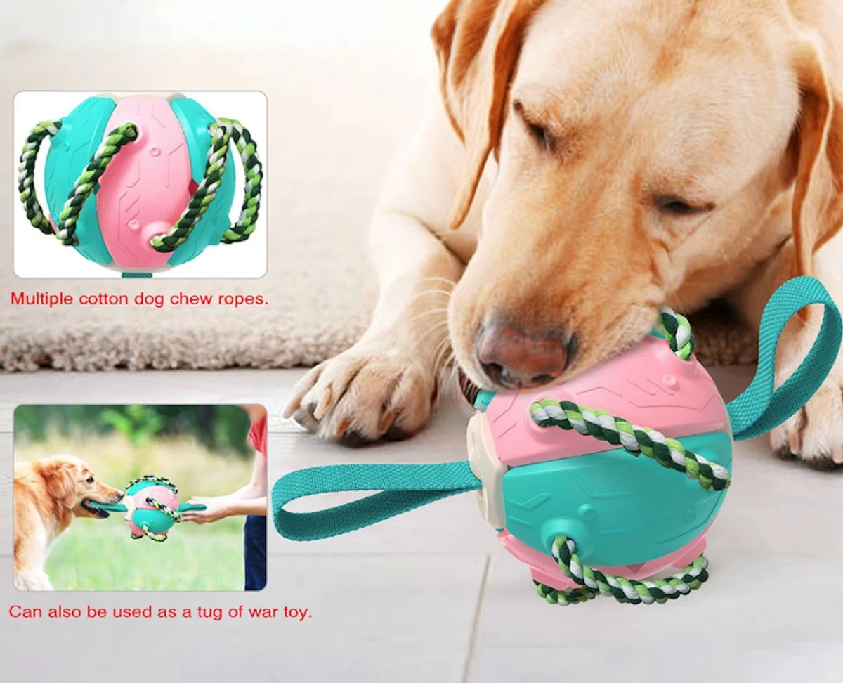 Interactieve spelletjes helpen storend gedrag te verminderen. Deze interactieve hondenbal heeft aan de bovenkant aan twee kanten meervoudig sterk en duurzaam katoenen kauwtouw, waarmee je werp- en achtervolgingsspelletjes met je huisdieren kunt spelen, die helpen overtollige energie kwijt te raken en verveling tegen te gaan.