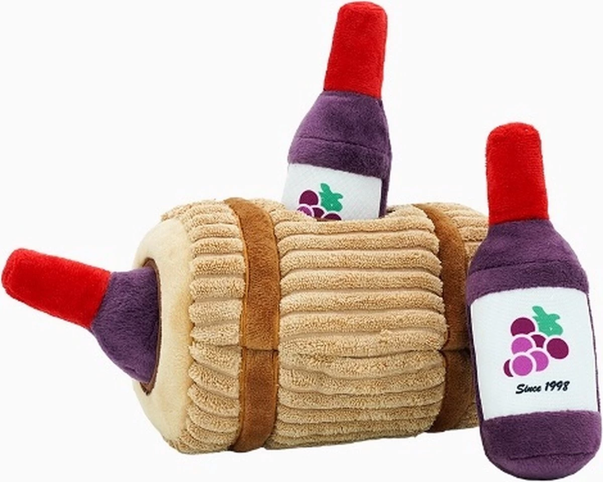 Stop de wijnflessen en wat snoepjes in het vat en de hond kan lekker bedenken hoe hij bij het lekkers komt