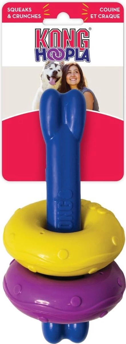 De Hoopla Bone van Kong is een kauwspeeltje voor de hond. Door de verschillende texturen en leuke geluiden zal de hond hier lang mee uitgedaagd worden. Het speeltje is gemaakt van stevig materiaal, waardoor het lang mee zal gaan.