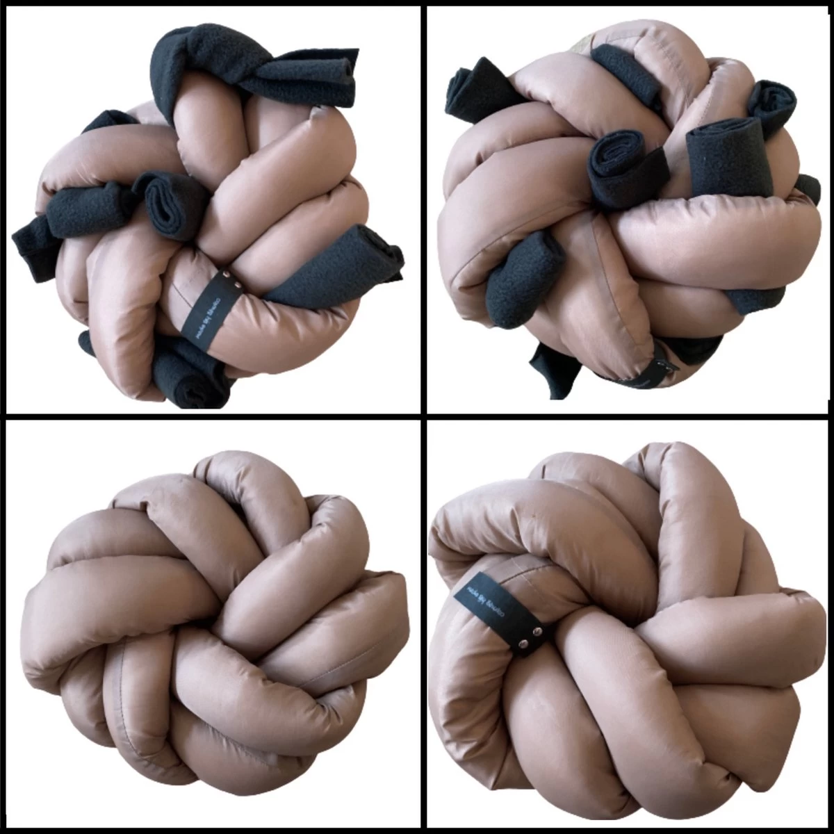 Een snuffelkussen is een geknoopt kussen, waartussen je verschillende maten lapjes fleecestof doet.