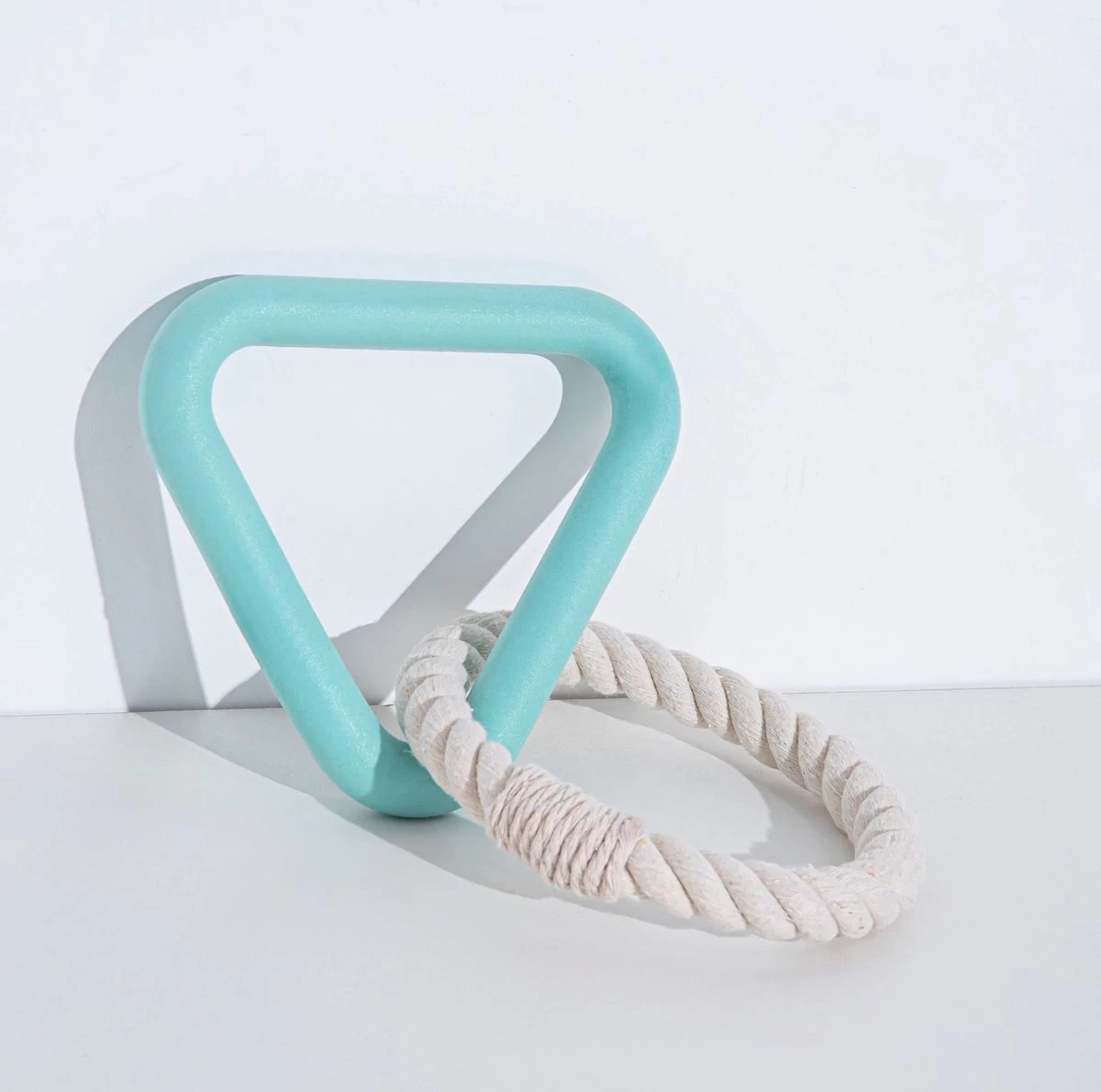 Touwspeeltje Hond Triangel | Touwtrek Speelgoed | Aqua | Katoen Koord En Rubber | Volwassen Hond En Puppy
